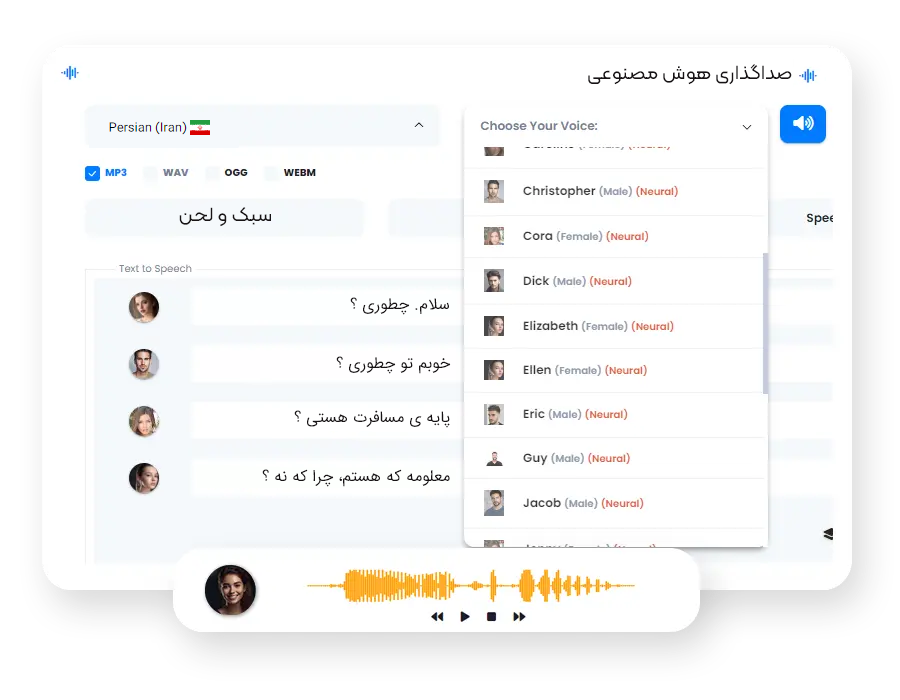 در هر صدای تولید شده، احساسات واقعاً انسانی را به کار گیرید و به صداهای خود جان ببخشید. صداهای هوش مصنوعی ما دارای عناصری هستند که باعث میشوند یک صدای کاملا طبیعی به نظر برسد و تمامی بیانات و تغییرات لحن لازم را دارند تا مخاطبان شما بیشتر در محتوای شما غرق و درگیر شوند